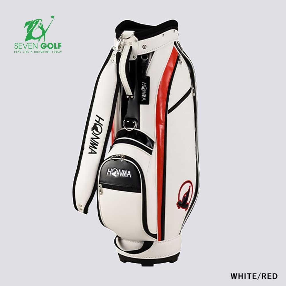 - Thiết kế ấn tượng cùng kiểu phối màu mảnh mẽ theo phong cách thời thượng với phần chỉ chạy nổi với logo Honma làm nổi bật thân túi toát lên sự khỏe khoắn và mạnh mẽ của golfer.